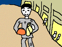 ところで、李小の家の中では、乞食がどうしても着替えようとしないので母は出した着物をしまい、「ゆっくり休んでから行くといい」と言いました。そして乞食は少し考えてから「こちらにはまだお嫁さんはいないのですか」と聞きました。「貧乏でお嫁さんどころじゃないんだよ」と母が答えると、乞食は膝をついて座りなおし、「あたしをお嫁さんにしてくれませんか」と言いました。母は「えっ!あなた女なの!?」と驚きました。