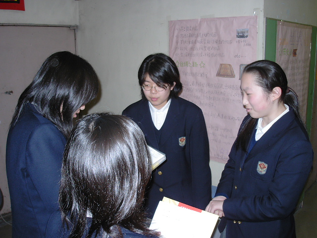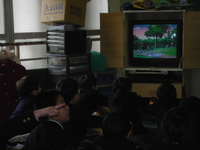 中学生の教室の方は落ち着いた雰囲気で、休み時間中はみんな教室の中でしゃべったりしていて、私たちの通う学校とも似ている雰囲気がしました。また、その後の授業では、中国語によるビデオを見ていました。
