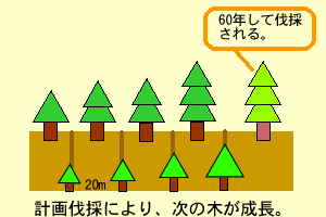 これによって、木材の原木を確保しながら森林の成長を促進するのです。