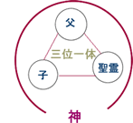 | 博士 | 「最初は、今言った『三位一体説』か、それともイエスはただ単に神が作り出したものである、と思った人たちに分かれたんじゃ。結局『三位一体説』になってしまったがね。」 | ||