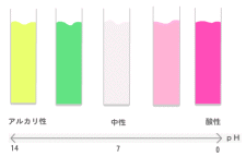 (*1) pH pHと書き、ピーエイチ、と読みます。 昔はペーハーと呼んでいましたが、昭和30年代にピーエイチに統一されました。年をとった先生は、まだペーハーと言っていることも? (別にどっちが正しいという意味ではないです) なんて雑学はどうでもいいので置いといて(汗)、pHの別名を「水素イオン濃度」といいます。つまり水素イオンがどれだけ含まれているかを表す単位のこと。 「すっぱさを体感しよう」で書いたように、水素イオンが多い(=pHが低い)ほど、酸性の度合いが大きくなります。 0から14までの値があり、0に近づくほど酸性が強くなり、14に近づくほどアルカリ性が強くなります。 そして7が中性です。 ちなみにどうしてHだけが大文字かと言えば、Hは水素のHだから。管理人は間違えてテストで減点をくらった過去があります(苦笑) ちなみにヘクトパスカル(hPa)のPも大文字です。これはPが人名だからですね。これも減点・・・(遠い目 (*2)ジュースなどに使われる 正確には清涼飲料水ですね。 薬品名「赤キャベツ色素」として、赤系の清涼飲料水などに、広く使われています。 他に赤い色素としては、野菜色素やコーラでお馴染みカラメル色素などもあるので、赤系の清涼飲料水を飲むときは一度チェックしてみてください♪ (*)野菜色素は総称で、ムラサキキャベツ液も野菜色素に入ります。その他赤ダイコン色素なんていうギャグのような色素もあって、これも野菜色素です。 |