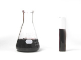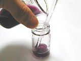 ![]() ムラサキキャベツと同じ色素を持った野菜や植物からなら何からでも抽出することができます。 右の写真は去年の秋にアサガオの花から作った指示薬。 なんども煮詰めたので黒っぽくなってしまいました。 ムラサキキャベツの場合、キャベツ特有のにおいがどうしてもしてしまうので、アサガオ指示薬のほうが使いやすいといえるかもしれません。 ちなみに急いで作るために今回は煮ましたが、ゆっくりでよいのであれば、エタノールにつけておくだけで自然に溶け出します。 |