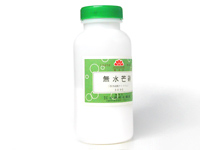 薬品名に「無水」とありますが、単に硫酸ナトリウムの無水物、つまり水分が含まれていない種類を指しています。硫酸ナトリウムとは少し性質が違うのですが事典等では同じ区分に扱われるようです。