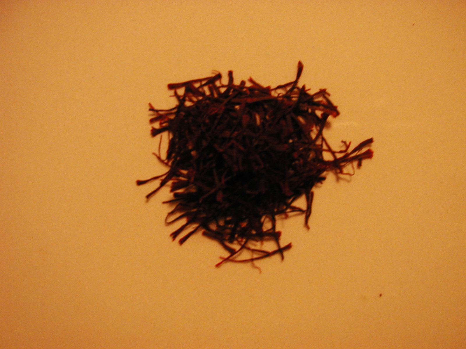 長さ3cmほどの赤褐色の糸状のものなので、独特の香りとかすかな苦みがあります。サフランに含まれるクロシンという色素成分により、水に浸すと鮮やかな黄金色が抽出されます。サフランは、花が咲いたらすぐにめしべを摘み取ります。1輪から3本しかとれず、1gのサフランを得るには150輪以上の花が必要といわれる、たいへん高価なスパイスです。南欧料理のブイヤベースや、スペインのパエリヤなど、魚貝料理や米料理の色づけと香り付けに使われます。また少量で鮮やかな色がつくので、スープやお菓子の色づけにも利用されます。サフランは体を温める作用を持つといわれ、冷え性にも効果的です。