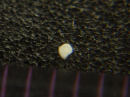 約1ミリ 2枚目の写真は1枚目の有孔虫の裏側です。 このように、殻に裏と表があるものもあります。 わかりにくいかもしれません…