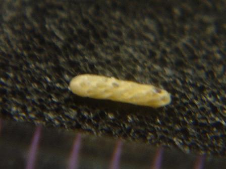 太さ約0.6ミリ ルーペで見た時の写真です。 よくみると、しま模様があるのがわかります。 これの正体をご存知の方、ぜひ、メールか掲示板で教えてください!