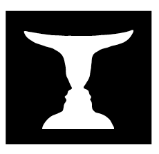 ■ 黒い部分は向き合っている人の顔に見え、白い部分は杯に見えますが、両方を一度に見ることはできません。これを「選択的注意」といいます。