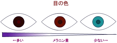 反対に太陽光線が弱く日光の照射率が低い国では虹彩内のメラニン色素の量が少なく、
