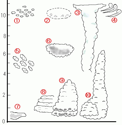 国際的な取り決めで、巻雲、巻積雲、巻層雲、高積雲、高層運、乱層雲、層積雲、