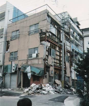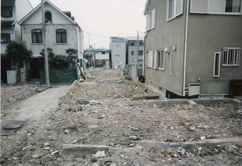 災害後の神戸では、ビルが傾いていたり住宅街から家が消滅したりしていました。