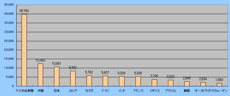 このグラフの中で特徴的なのがブラジルやフランスですね。ブラジルは水力発電が八割、フランスは原子力発電が七割を超えています。一方わが日本はというと、火力発電が主ですが原子力なども三割弱あります。昔は水力発電中心でしたが、今は火力発電そして原子力発電が増えてきています。たまにニュースなどで、この原子力発電所をどこにつくるかというのが結構問題になります。もしも爆発すれば、チェルノブイリの発電所事故の二の舞となるからですね。原子力発電には、放射能漏れの防止やその後の核廃棄物の問題が相当なネックとなっています。 |