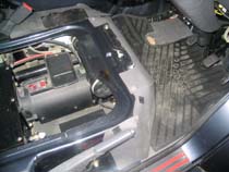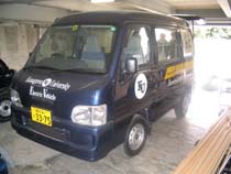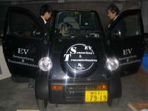 駐車場の中です。 これが、神大で作られた電気自動車。 バッテリーはここに詰まれています。 |