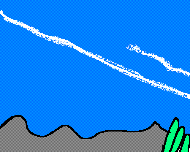 | 竜雲 空に現れた絹雲は飛行機雲のように直線を描くことが多い。ジェット機の航跡である飛行機雲は短時間で消えてしまうが、地震雲としての飛行機雲は直線状にのびて震源地をめざす。色あい、太さ、本数などは変化し、すぐに消えることはない。 |
