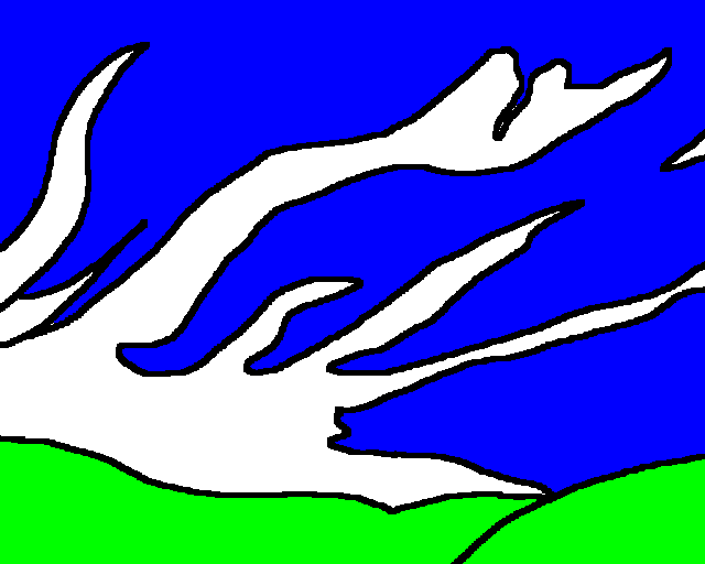 | ウナギ雲 多量の水分をとらえた線は太くて方向性をもち、空にウナギが横たわっているように見える。この雲のときは規模の大きい地震がおこっている。 |