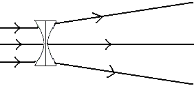 凹レンズには光線を広げる働きがあります。日本の人口の3分の1の人が使っている近視用のめがねのレンズとして使われています。。