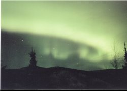 ![]() | 詳しく言うと、オーロラが発生する付近の大気には、酸素原子や酸素分子、窒素原子など様々な物質があります。 オーロラは、大気中の酸素原子や窒素原子などの物質に高速で電子が衝突して発光しているのです。 例を挙げて説明しましょう。 酸素原子に電子が高速で衝突するとします。すると、酸素原子は電子から運動エネルギーを与えられ、 通常の状態とは異なる不安定な状態、励起(れいき)状態になります。 その後、酸素原子が緑色に発光する場合は、約0.7秒後に、正常な状態に戻ろうとして、 余分なエネルギーを光として放出します。 |