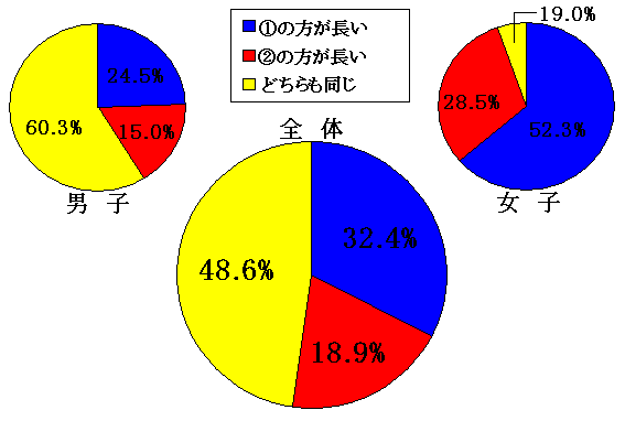 ◎男子は女子の三倍の人が同じ長さだと気付いた!