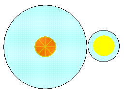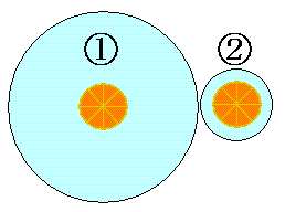 れはオレンジの周りの円(薄水色のお皿)とオレンジの距離が遠