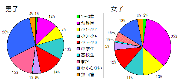 このことから男女で自我の芽生えの時期が、女子は男子よりも早い時期に来る人が多いことがわかりました。