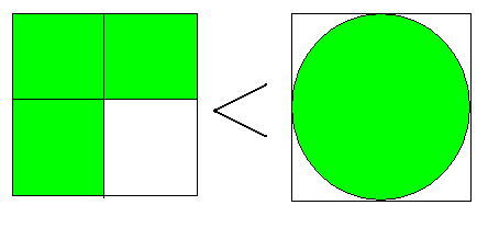 半径×半径×3.14は正方形より小さく、正方形の4分の3よりも大きい事が、証明されます。