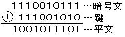 これを用いることにより、平文+秘密鍵=暗号文 暗号文+秘密鍵=平文 が成り立っている。