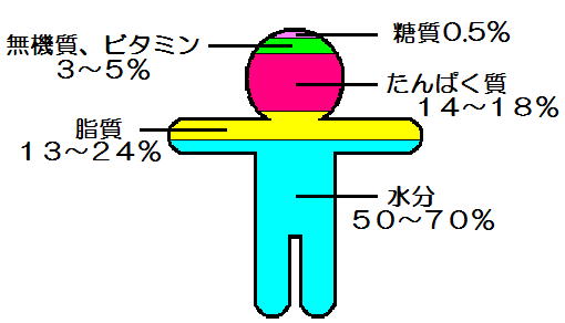 私たちの体は60兆個もの細胞でできています。これらの細胞の成分は下の図のような割合です。