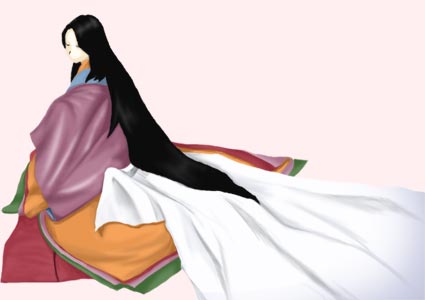 平安時代 平安時代には中国文化に影響を受けた衣服の名残はありつつも、国風化の傾向により日本独自の形をした、着物の基本となるような衣服が「直線裁ち」という方法で作られました。平安装束と呼ばれる貴族などの服装がその代表的なもので、衣冠束帯(いかんそくたい)や十二単(じゅうにひとえ)などの色鮮やかで優雅な服装が多く見られました。男性は礼服に束帯や衣冠というものが着用されていました。束帯は最高級の位の者が着る文官束帯(ぶんかんそくたい)があり、文官束帯の次に武官束帯(ぶかんそくたい)があります。衣冠は略礼装でした。また普段着として、外見が衣冠と同じような直衣(のうし)、動きやすいように作られた狩衣(かりぎぬ)、そして水干(すいかん)という狩衣に似た簡素なものを着ていました。女性は十二単、袿(うちぎ)、水干などを着ていました。 十二単に関しては、四季の移り変わりのはっきりした日本ならではの色彩表現を使っており、様々な日本の花の色の服を何枚も重ねて着ることによって襟や袖口、裾に見られる色の移り変わりの優雅な美しさを表していることで有名な衣装です。 |