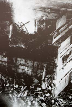 それを停めようと緊急停止ボタンを押し、引き抜いた制御棒をあわててすべて戻したが間に合わず、冷却用の水がものすごい勢いで蒸発し、水蒸気爆発を起こしたとされている。 その爆発で原子炉の屋根に穴が開き、放射性物質が漏れたのだ。