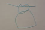 テグスをばってんにして、下になったほうを、中へ通します。 すると左のようになります。