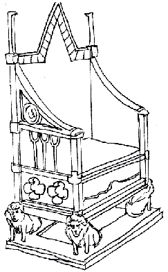 を示します。宗教や王朝の権威の象徴というだけあって、 椅子にもパリのノートルダム寺院のような尖塔アーチをそのままに摸した小尖頭 が設けられ、荘厳で豪華なデザインになっています。