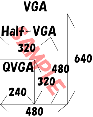 ディスプレイには解像度という数値があります。いわゆるQVGAやVGAなどといったものです。VGAというのは横に480ドット縦に640ドットがあるという意味です。QVGAのQはQuarterで解像度がVGAの縦横半分、結果的に1/4ということです。新しい携帯にしたら前の端末で保存したデータが小さくなって悲しんだ経験ありませんか?からくりは前の携帯はQVGAで新しくした携帯がVGAだったということですね。もうひとつ付け加えておくとWQVGAやWVGA、FWVGAというのはQVGAやVGAの縦のドットを追加して表示できる情報を多くしたのでWideという意味でついています。FはFullの意味でアスペクト比が16:9になるまで縦を伸ばしました。ということです。アスペクト比が16:9だとワンセグを見るのに便利なので積極的に取り入れられています。ほかにもHalfVGAというのがありますこれはVGAの半分ということで320×480。かの有名なiPhoneに採用されているのがこの解像度のディスプレイです。