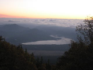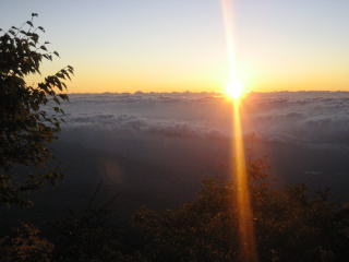 | 富士山登山記 〜六合目〜 2008年10月12日(日) 05:31 六合目到着 須走口六合目 標高2400m ![]() なんとか間に合った。 最悪ここまで来ればご来光をはっきりとみることができる。 「六合目」の標識を見たとき、喜びとともに、気持ちの中の何かが吹っ切れた。 「休憩している暇はない。時間が許す限り、上に進もう。」 疲労はかなり溜まっていたが、無心で高度を上げていった。これを可能にしたのは、おそらく「若さ」であろう。 暗黒の空は、ふと気付けば日を取り戻し、山中湖をきれいに照らしている。 ![]() このあたりまでくると背丈の高い木々は姿を消し、富士の山頂も望むことができるように。 また、明るくなってきたせいか寒さも和らいできた。 西側には富士山の山頂も見え始めてきた。そういや山頂に雪がない。 ![]() そして、前の写真を撮ってから何分が経ったときのことだろうか。 05:48 ご来光 ![]() 東の空を見ると、目を開けられないほどの閃光が。 それは人生の中で最もまぶしい光であった。 「これがご来光か」 ![]() 僕たちは恍惚として見入っていた。 その光は疲れていた僕等の体に染みわたり、失いかけていたバイタリティーを一瞬にして回復させた。 生命力とはこういうことをいうのか。久々に自然の恵み、自然の力を実感させられた。 その後は勉強のこと、友達のこと、本当にいろいろなことを話しながら僕たちは登った。 山の開放的な雰囲気のためか、普段なかなか話さないようなことまで話題に出た。 ちょっと恥ずかしいが深まる友情といった感じで、こういう時間がたまらなく好きだ。 ![]() 話に没頭すると、時が経つのも早いもの。 しばらくたって日も完全に登りきった頃、目の前には本六合目が見えてきた… ▼Back ▼Next ▼日記TOPへ |