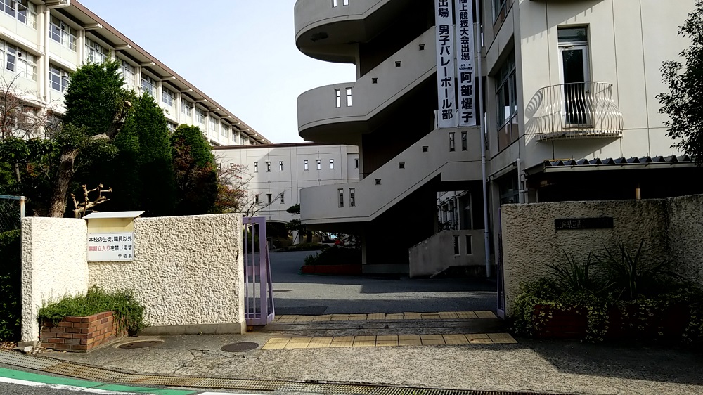 モデルになった西宮北高校につくと西宮市が一望できました。中に入ることは出来ませんが正門からの様子はアニメのままでした。