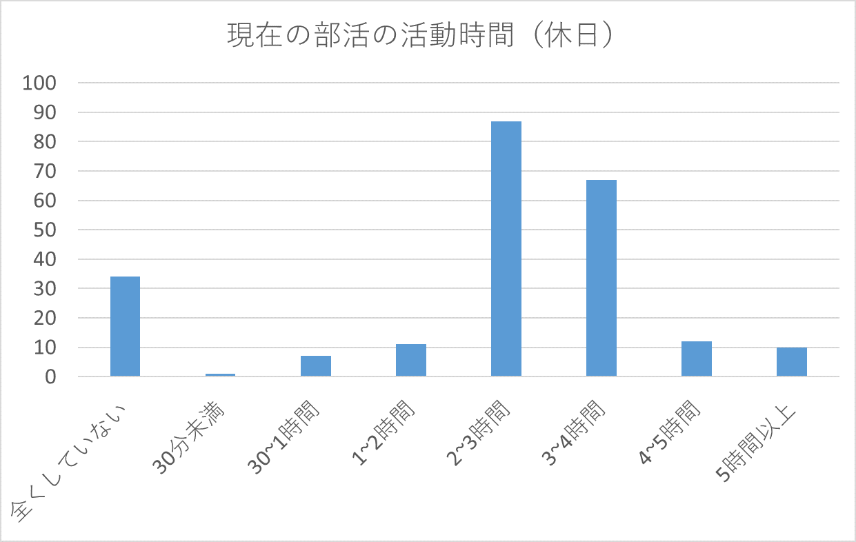休日に活動している部活動は、たいてい2~3、3~4時間活動していることが多いですが、5時間以上活動している部活もあります。