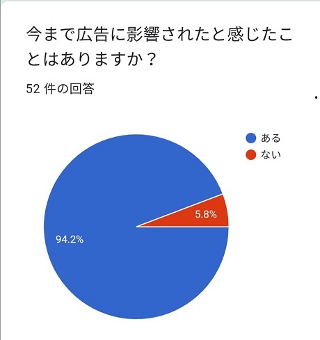 ・ほとんどの高校生が広告に影響されたと感じたと、回答。