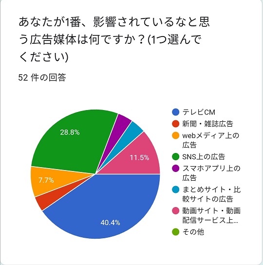 ・4位には、「webメディア上の広告」となりました。これは、スマホで何か調べものなどをするときに、web上にあらわれる広告に触れる機会があるかではないかと推測しました。
