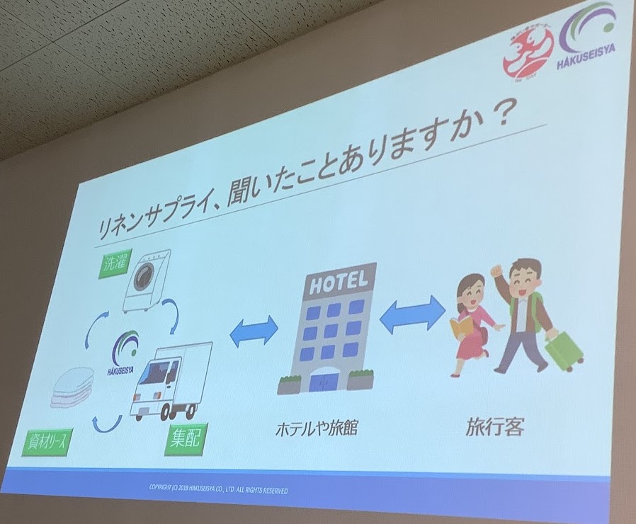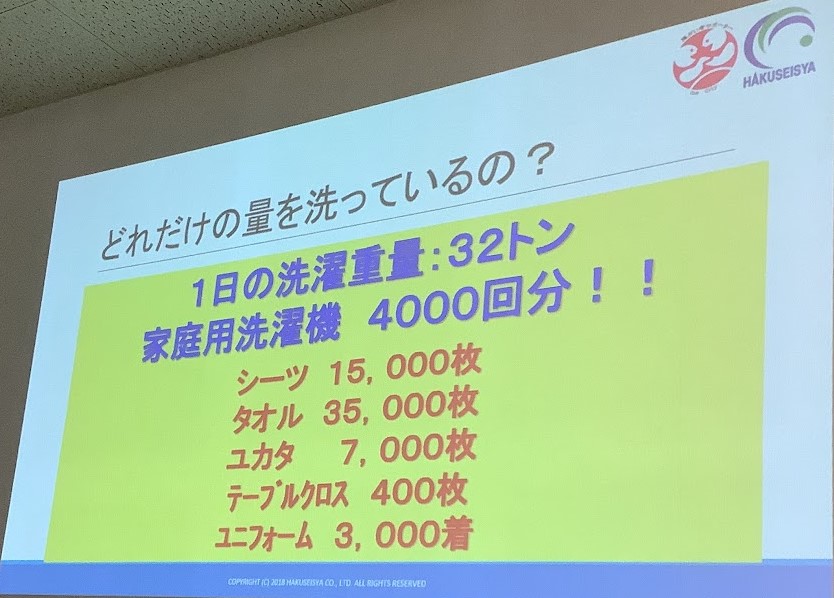 私たちは、サイト作成のため環境汚染についてを調べている際、県内でSDGsについて取り組んでいる企業を紹介するサイトで白清舎の取り組みを見て興味を持ち、具体的にどのような対策をしているかを訪問してお聞きしたいと思い、取材に行きました。 SDGsについて 白清舎ではリネンサプライというものをしています。 リネンサプライとは毛布などを洗濯したり買い取ったり売ったりすることです。 白清舎は洗剤の量を調節したり工場の熱を再利用していて、 3Rなどにも取り組んでいます。