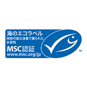 MSC認証ラベル魚やカニ。エビ・貝類などの水産物に使われています。 |