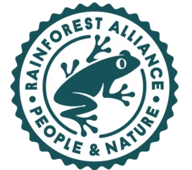 レインフォレスト・アライアンス認証マークコーヒー・紅茶・チョコレート・バナナ・メロン・ろうそくなどに使われています。 |
