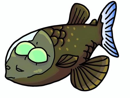 デメニギスの頭部は透明なドーム状の膜で覆われ、内部は液体で満たされています。