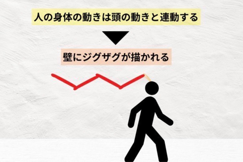 その運動のメカニズムを探る分野『動物進行論』動物の進化や発展の過程を研究し、どのように生物が変化してきたかを考察といった著作を通じて、人間の動きに関する考察を行いました。彼は、インクを浸した植物の葦を頭につけた人間が壁の横を歩くと、頭の動きがジグザグに描かれることを示唆しました。
