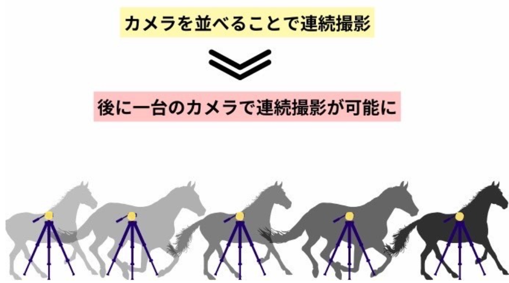 マレーの法則を提唱しました。が動作分析の分野で重要な貢献をしました。エドワード・マイブリッジは、高速度カメラを使用して動物や人間の動きを連続的に撮影し、動作の各瞬間を詳細に記録しました。1878年には12台のカメラを並べ、疾走する馬の動きを連続撮影することで、「前足と後ろ足がそれぞれ前後に伸びる」とされていた従来の理解を覆す結果を示し、大きな反響を呼びました。
