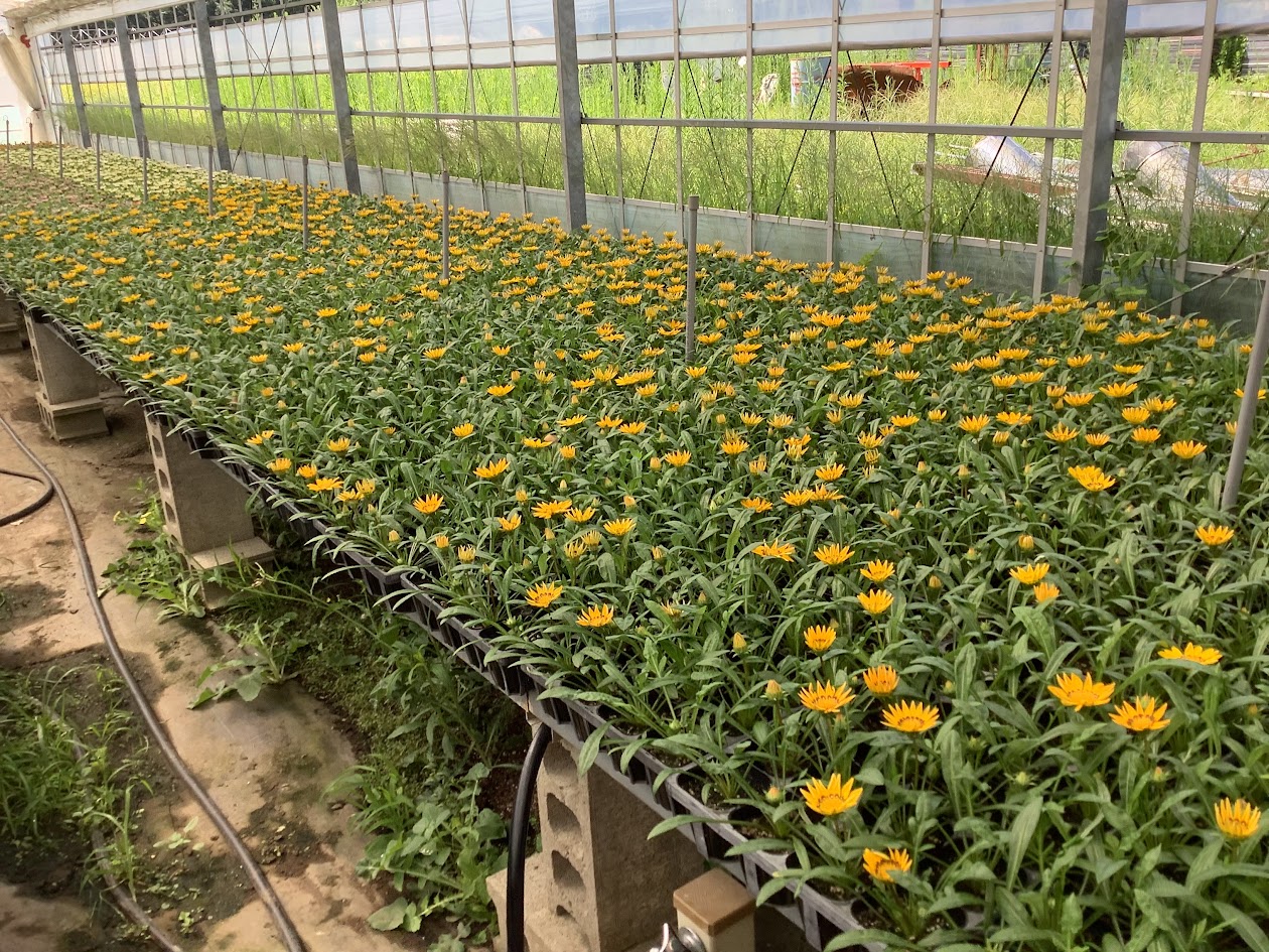 うちはほとんどホームセンターに出荷するのでホームセンターの予定数を作るのですが気候とか虫に食べられるとダメになるので多めに作っています。この多めに作ったものを産直で売ったり、伸びてくる花を切り戻して再生し、売り場に持っていったりしています。