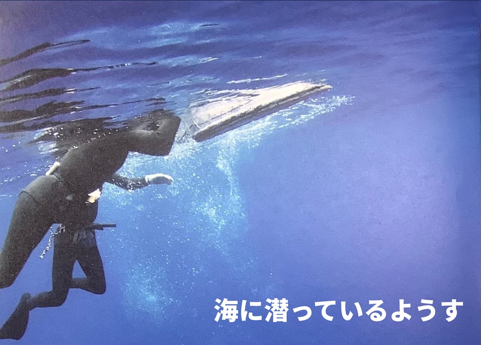 木の柄がなく、一方ががカギ状に曲がっている。ウニやサザエをとったり、岩に引っかけて体を安定させたりするのに便利。