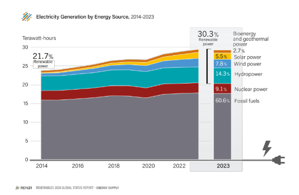 出所)REN21「自然エネルギー世界白書2024 エネルギー供給」より引用