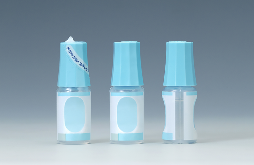 点眼容器「ディンプルボトル」は、従来の点眼容器をゼロから見直し、患者様の視点に立って見やすさと使いやすさを追求した点眼容器として2002年に開発されました。ディンプルとは小さなくぼみを意味し、ボトル両側面のくぼみによって持ちやすさが向上し、軽く押すだけで一定量を点眼できるよう工夫されています。さらに、大きなキャップや色分けによる識別のしやすさ、表示文字の拡大、両サイドのスリットで残液量を確認できる仕組みなど、日常的に使用される患者様が安心して使えるよう細部まで配慮されています。また、キャップ形状やシュリンクラベルの改良により、力の弱い方でも開けやすい設計が取り入れられており、こうした患者様中心の工夫が高く評価され、2008年にはグッドデザイン賞を受賞されています。 近年では、環境への配慮も進められ、2021年からは一部製品に再生可能なバイオマスプラスチック素材を採用し、焼却時に排出される二酸化炭素が原料植物の光合成で吸収されるため、実質的に大気中の二酸化炭素を増やさず(カーボンニュートラル)、持続可能な社会づくりにも貢献されています。 ディンプルボトルは、幅広い年齢層の患者様の視点に立った使いやすさと、環境負荷低減の両立を実現した取り組みで、医薬品パッケージの新しい可能性にもつながっています。