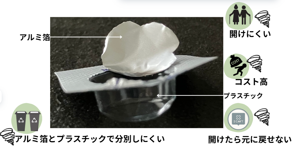 PTPシートは、高齢者や手の力が弱い人には少し開けにくく、プラスチックとアルミの素材でできているためリサイクルが難しく環境への負担もあります。また、個別包装なのでコストがやや高く、一度開けると元に戻せません。