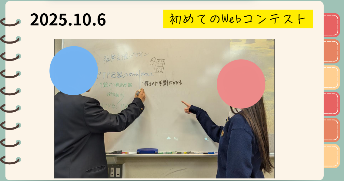 ~2025.10.6~ SSです。初めてWebコンテストに参加して思ったことは、社会人になったときに必要になってくるであろう能力や知識を知ることができたり、取材やブログの文章を作るなど高校生ならあまりしないような貴重な経験も積むことができたりと、ただWEBを作る能力が備わるだけのものではないのだなということです。私自身、高校に入るまでGmailを確認する習慣がついていなかったので、今回Webコンテストに参加して、得られたものは大きいと感じます。