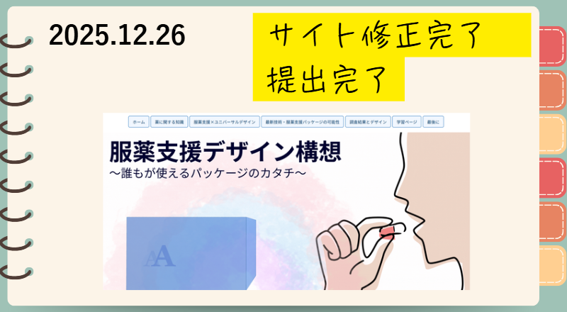 ~2025.12.26~ チームリーダーのSAです。サイトの修正が終わりました。最後の最後でヘッダーを変えて取材をもう1ページ追加しました。年末の忙しい中、対応してくださった第一三共ヘルスケア株式会社様には感謝です。私は、今年で4回目のWebコンテストでしたが、テーマが結構奥深くとても難しかったです。OTC医薬品は生活にとても身近なため、たくさんの方に見ていただきたいという思いから作成しました。チームメンバーと楽しみながら結果を待ちたいです。