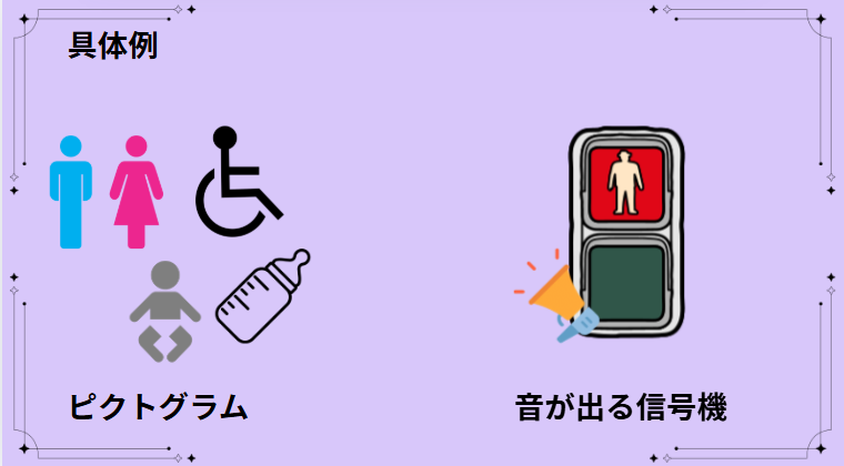→使用状況や、使う人の視覚、聴覚などの感覚能力に関係なく、必要な情報が誰にでも伝わること